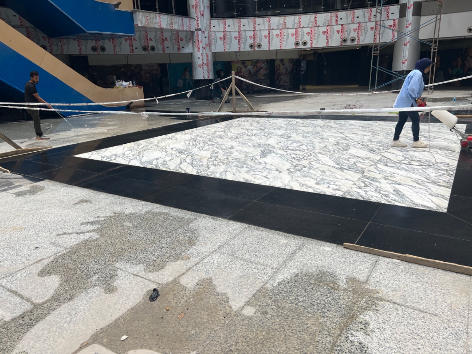 A design was made for all mall floors and the implementation of all mall floors and walls with different types of marble and granite