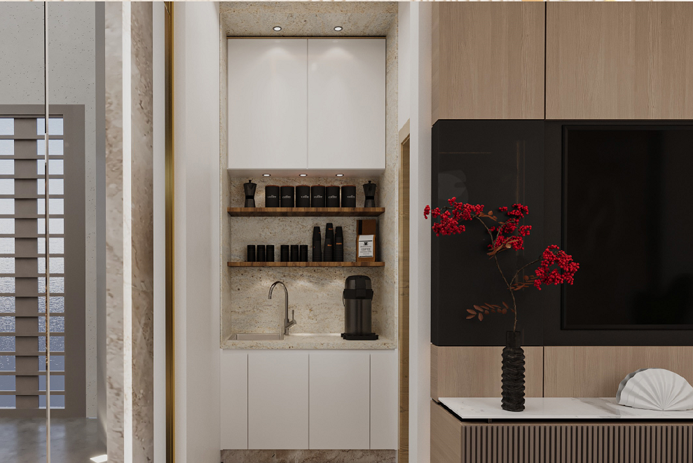 A comprehensive architectural design (2D & 3D) was developed for the administrative building, covering an area of 45 square meters. All construction and finishing works were fully executed to the highest standards.