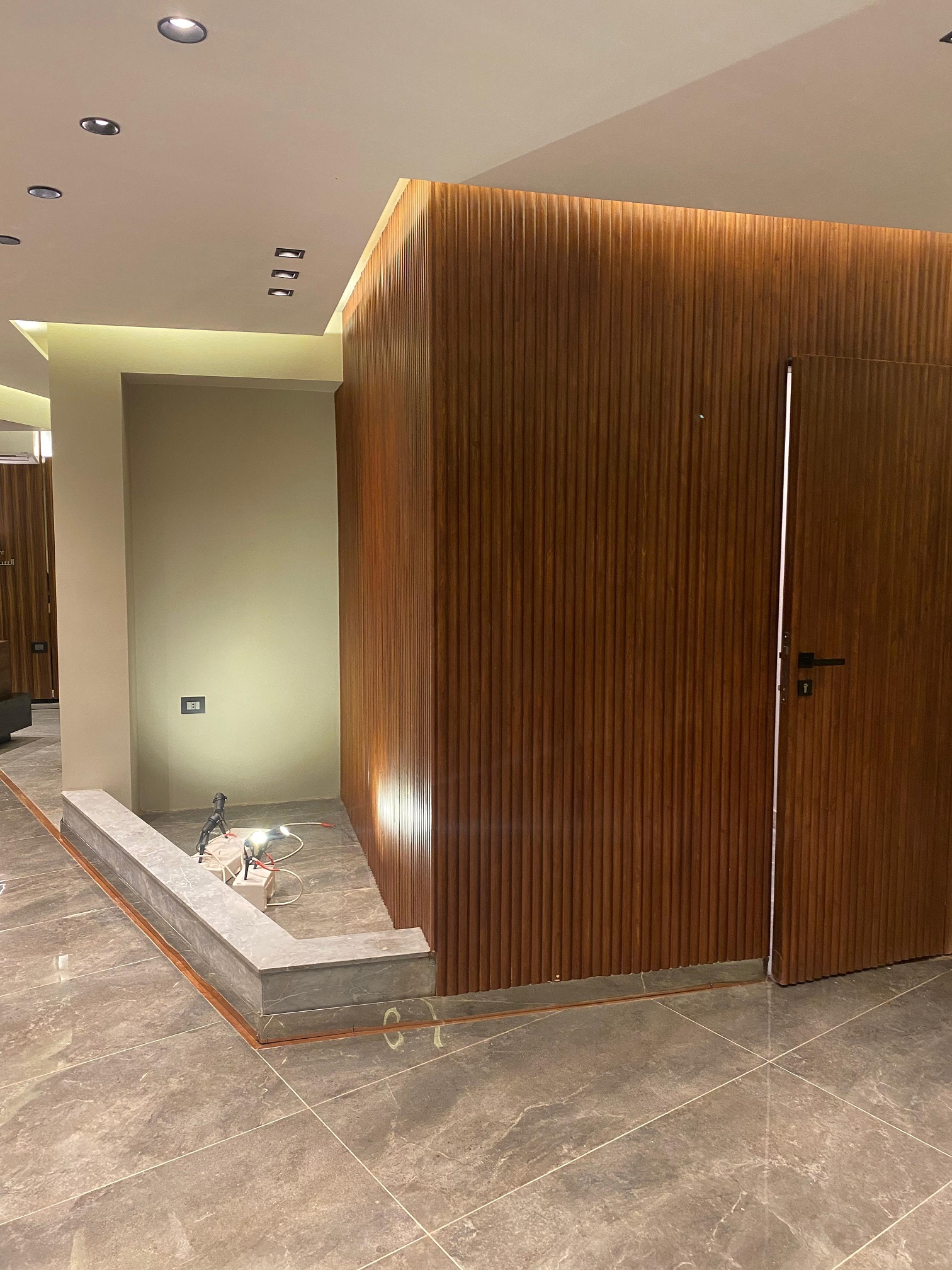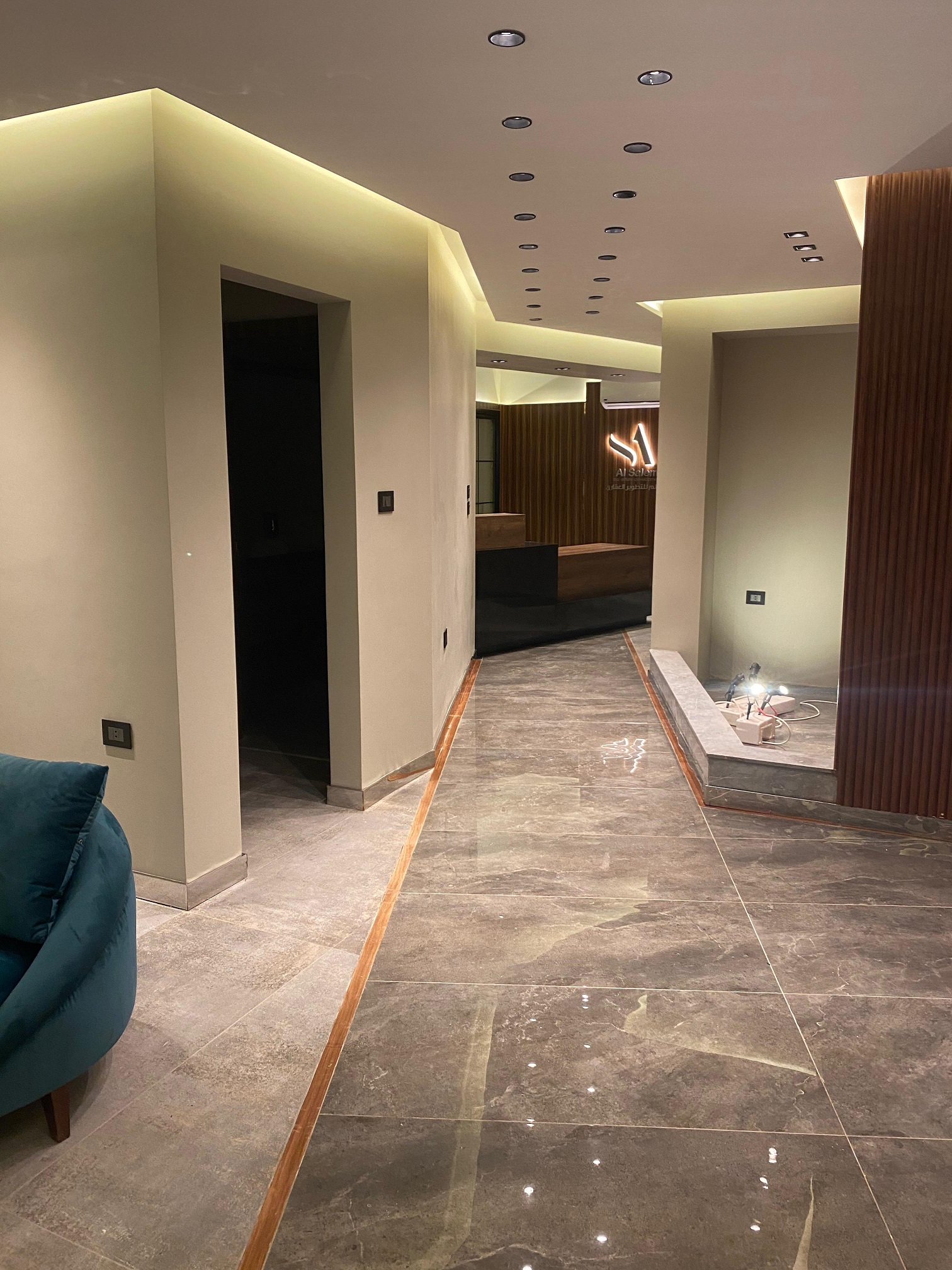 A comprehensive renovation was carried out to enhance the companys premises, including the supply and installation of stone cladding, HDF flooring, complete repainting of the building, and the execution of Romano and concrete effect decorative finishes, adding a modern and distinctive touch to the space.